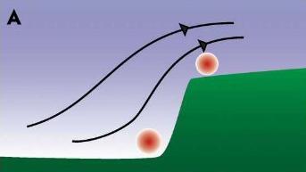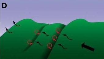 D. Овраги в горах имеют свои собственные мини подветренные стороны с роторами и воронками. Прибавьте к этому нагревание от солнца и долинные ветра и получится потенциально очень турбулентный воздух. Избегайте таких оврагов и полетов слишком близко к горе.