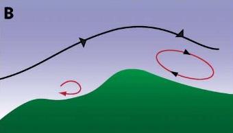 Почти каждый разговор о турбулентности сравнивает воздушный поток с потоком воды. Это хорошая аналогия и хорошо применима в этом случае. Если Вы наблюдаете за тем, как вода обтекает какие-то объекты в быстротекущем потоке, это покажет Вам как воздух будет вести себя когда он протекает вокруг очень огромных объектов - домов, деревьев, гор - на земле.